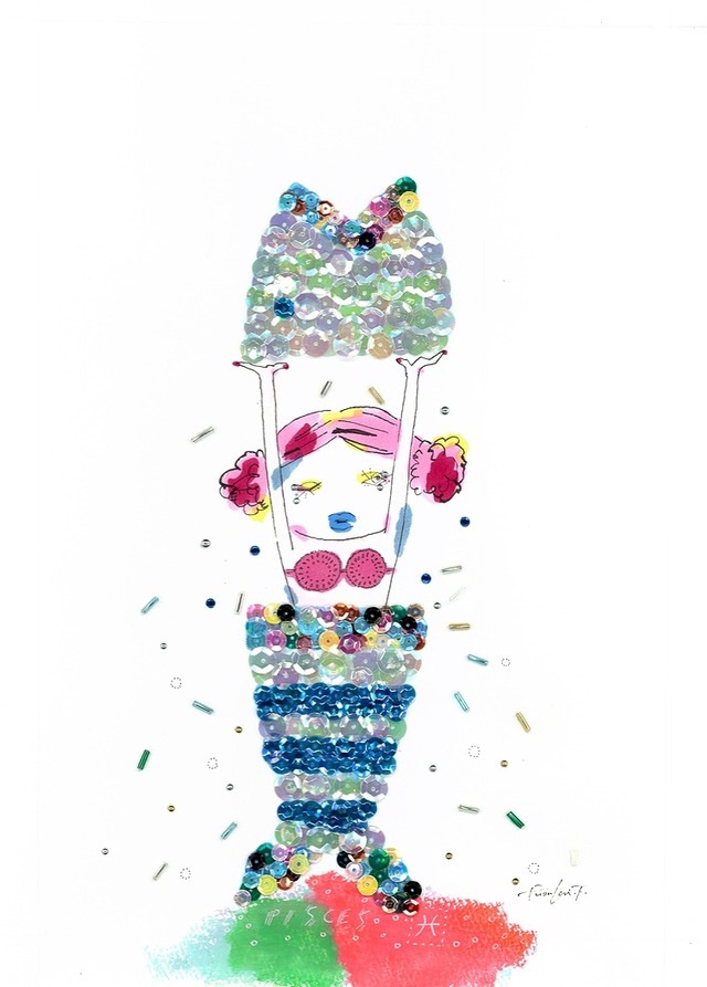 うお座♓️ Postcard/ポストカード ハガキサイズ,アートポスト用紙/台紙有 こちらの原画は、完売しております。 配送の日数などにつきましては、「特定商取引法に基づく表記」をご覧下さい。