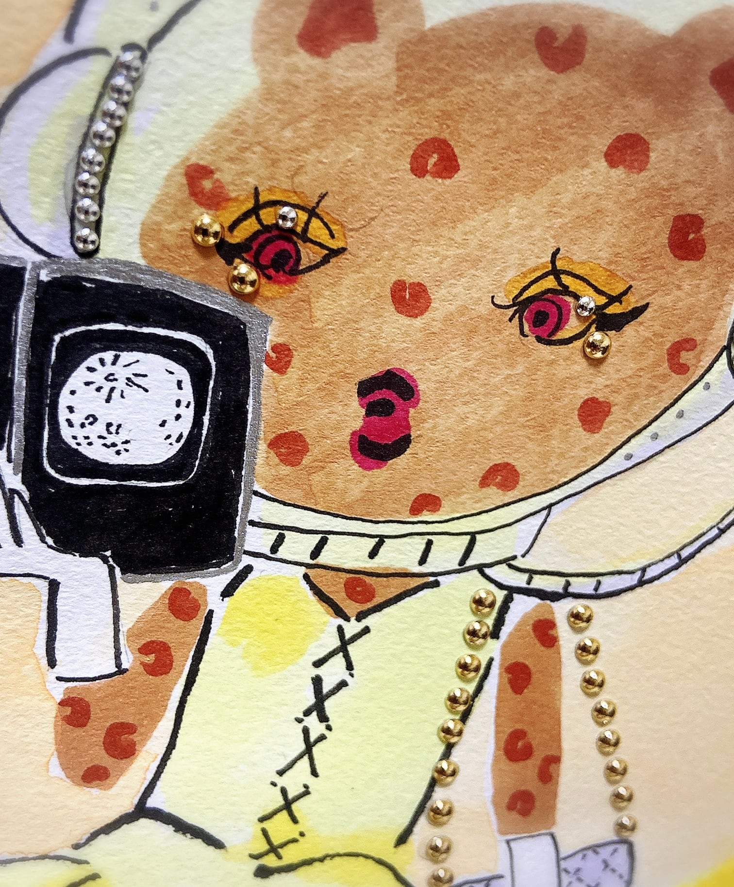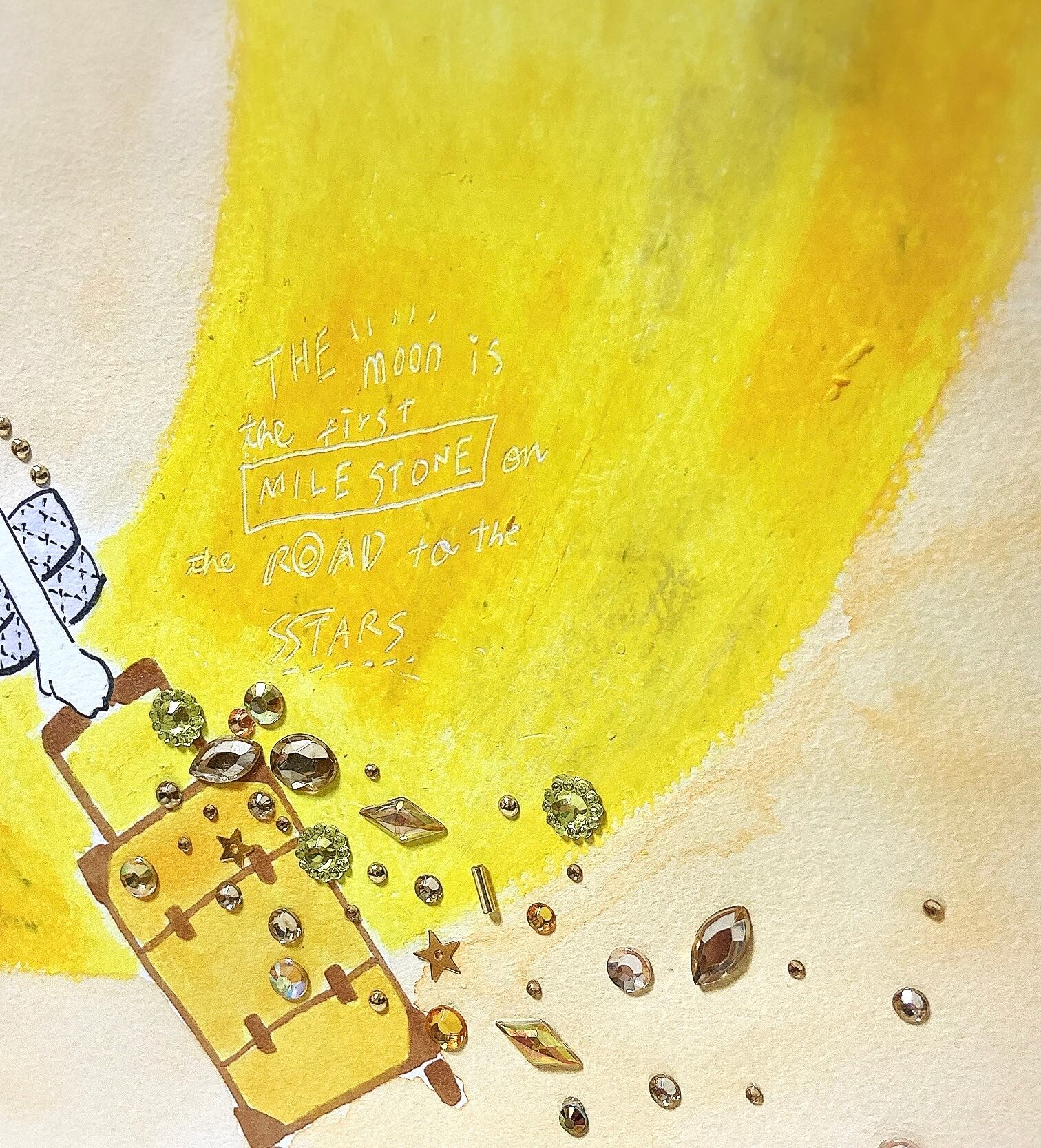●マーカー・パステル・スパンコール・ストーンをコラージュ