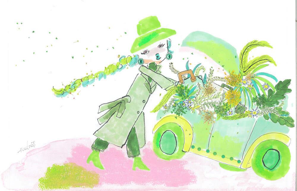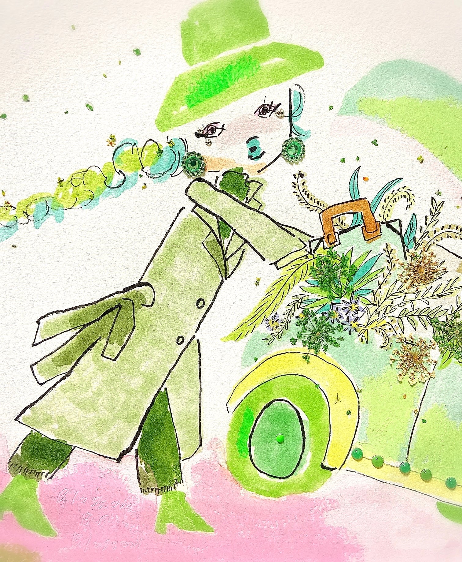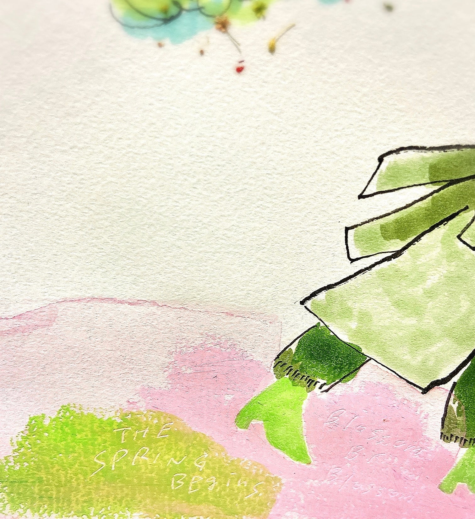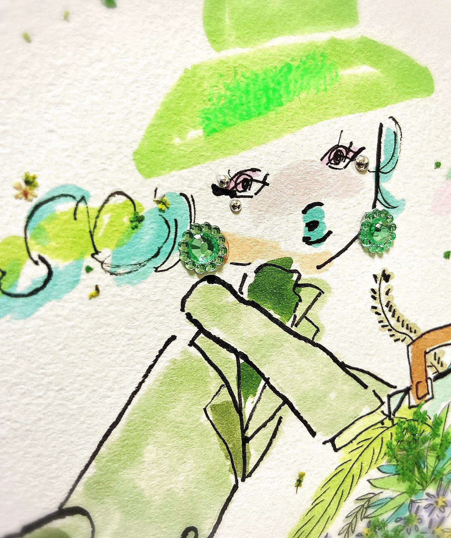 ●マーカー・パステル・スパンコール・ストーン・押し花をコラージュ